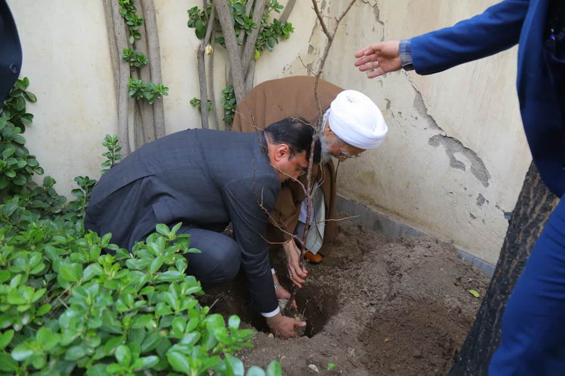 حضرت آیت الله العظمی جوادی آملی، همزمان با هفته منابع طبیعی و ایام درختکاری، طی مراسمی با حضور دکتر علی تیموری؛ رییس سازمان منابع طبیعی و آبخیزداری کشور یک اصله نهال غرس نمودند.